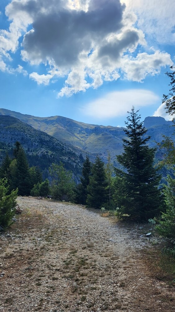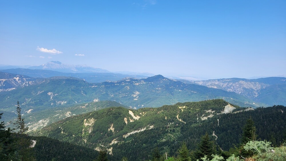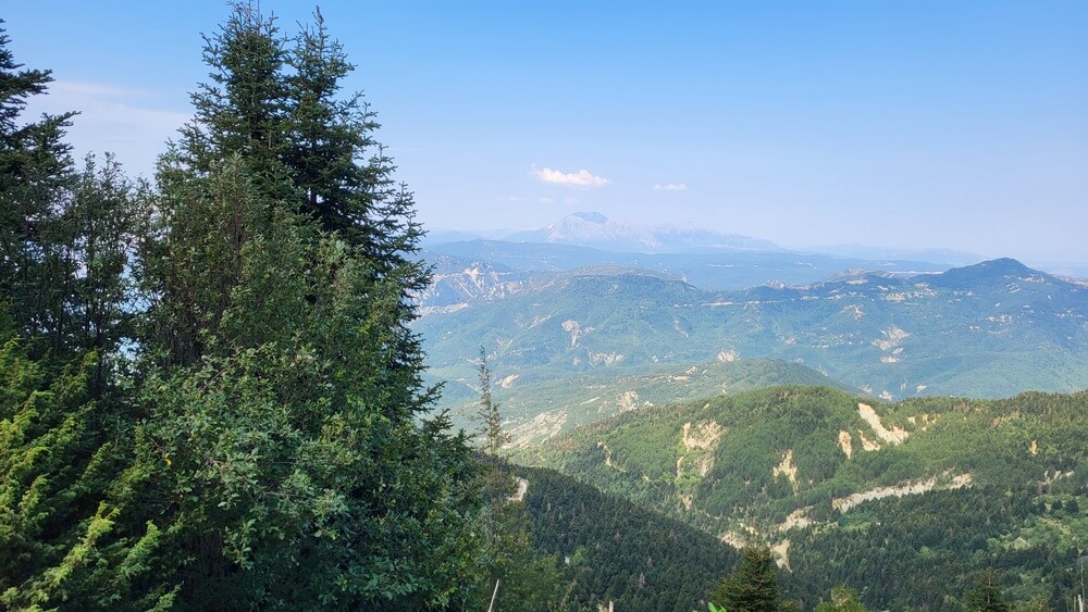 Μερικές εκατοντάδες μέτρα μετά το εκκλησάκι, στρίψτε αριστερά στη διχάλα και θα οδηγηθείτε σε μια εκπληκτική διαδρομή μέσα στα έλατα, η οποία θα σας βγάλει λίγο κάτω από την κορυφή.