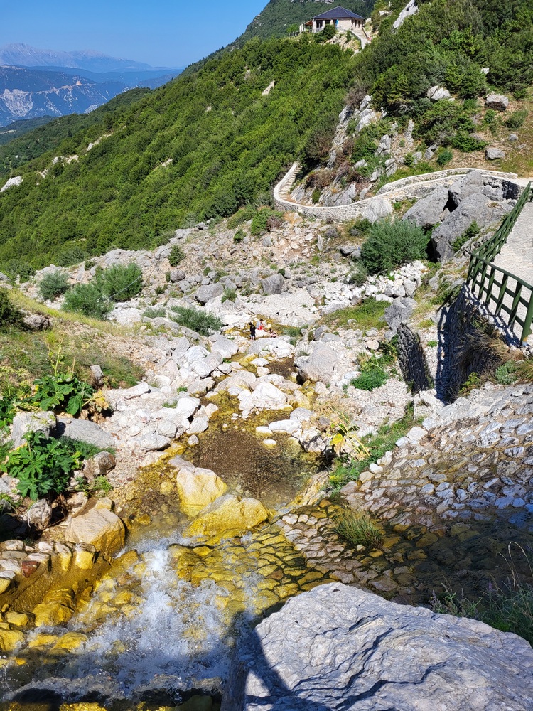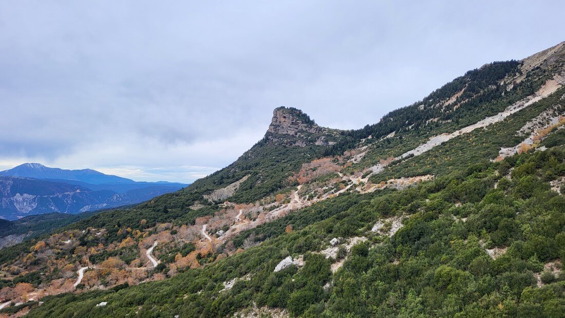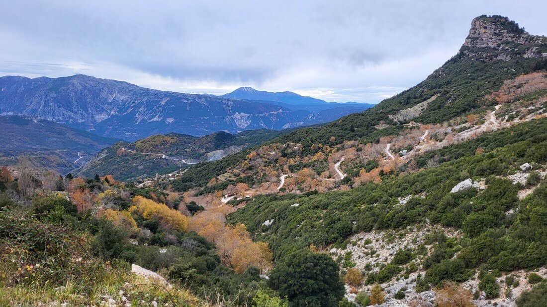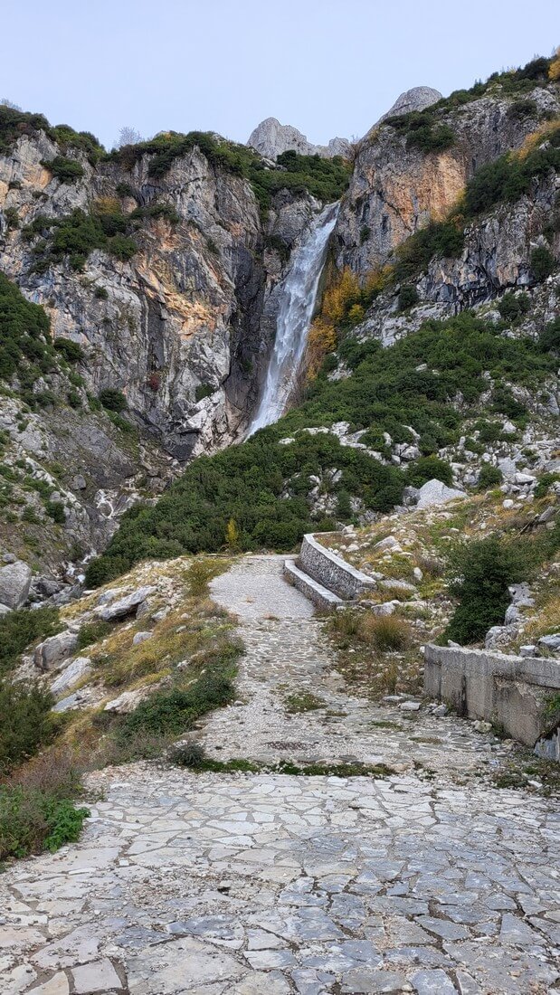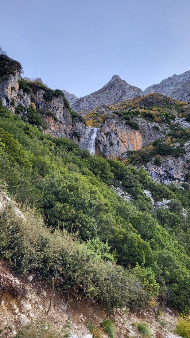 The location offers a unique view of the foothills of Tzoumerka and the valley formed by Arachthos, while the imposing peaks of the mountain range dominate above the waterfalls.